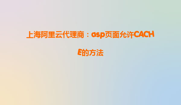 上海阿里云代理商:ASP页面允许CACHE的方法