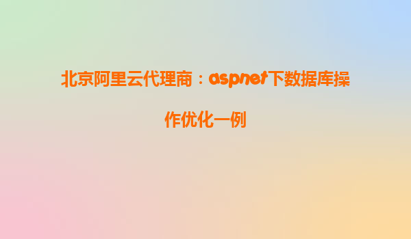 北京阿里云代理商:ASP.NET下数据库操作优化一例