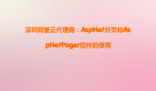 深圳阿里云代理商:AspNet分页和AspNetPager控件的使用