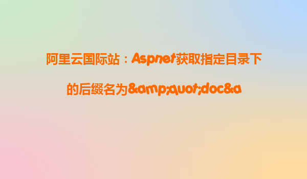 在现代Web开发中,ASP.NET作为一种强大而高效的开发框架,广泛应用于各种企业级应用程序的开发。获取特定目录下的文件信息,尤其是指定后缀名的文件,是开发过程中常见的需求之一。在这篇文章中,我们将以ASP.NET为例,介绍如何获取指定目录下所有后缀名为".doc"的文件名和文件路径,同时结合阿里云的优势,探讨如何高效利用阿里云国际站的服务来实现这一目标。