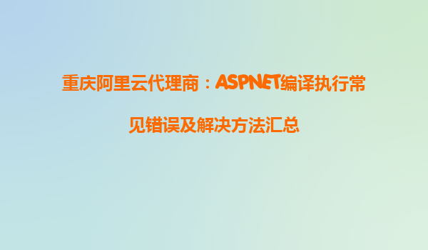 重庆阿里云代理商:ASPNET编译执行常见错误及解决方法汇总