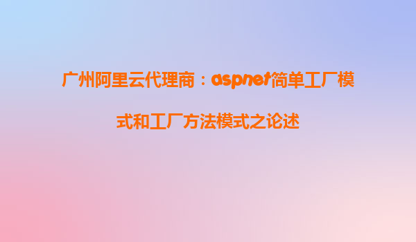 广州阿里云代理商:ASP.NET简单工厂模式和工厂方法模式之论述
