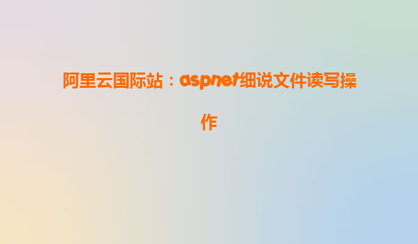 阿里云国际站:ASP.NET细说文件读写操作
