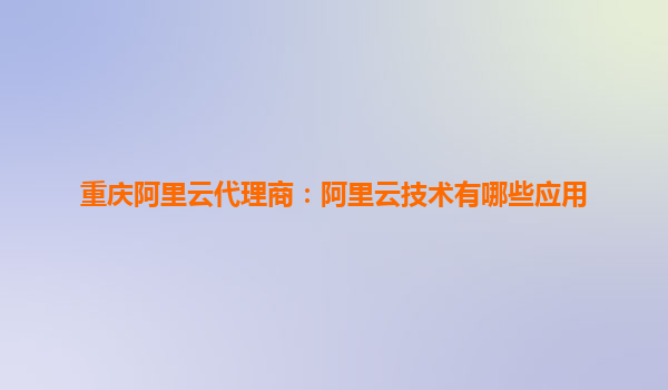 重庆阿里云代理商:阿里云技术有哪些应用