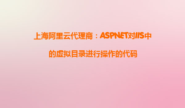 在阿里云的环境中,开发者可以使用ASP.NET通过程序代码动态地对IIS中的虚拟目录进行操作。通过ASP.NET的`System.DirectoryServices`命名空间,可以方便地创建、删除或修改虚拟目录。