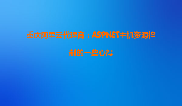 重庆阿里云代理商:ASPNET主机资源控制的一些心得
