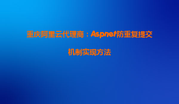 重庆阿里云代理商:Aspnet防重复提交机制实现方法