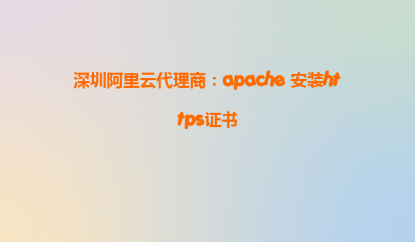 深圳阿里云代理商:Apache 安装 HTTPS 证书指南