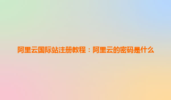 阿里云国际站注册教程:阿里云的密码是什么