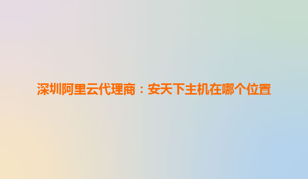 安天下主机:深圳阿里云代理商的优势