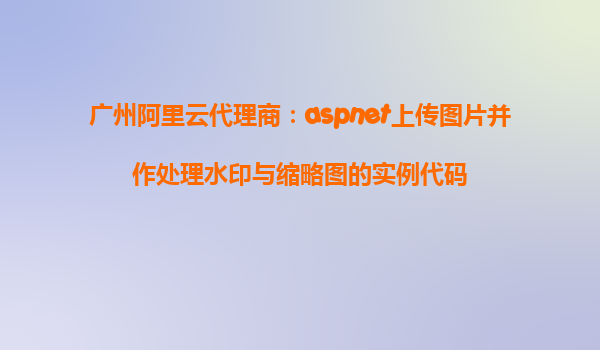ASP.NET上传图片并处理水印与缩略图