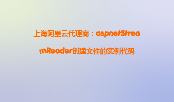 上海阿里云代理商:ASP.NET StreamReader创建文件的实例代码