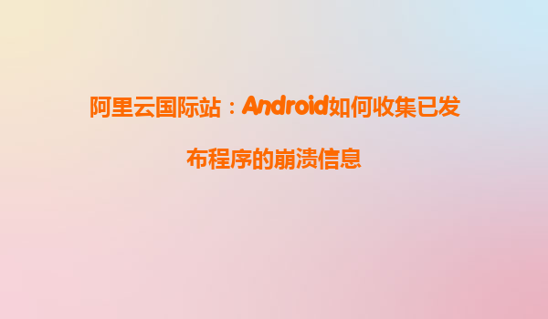 阿里云国际站:Android如何收集已发布程序的崩溃信息