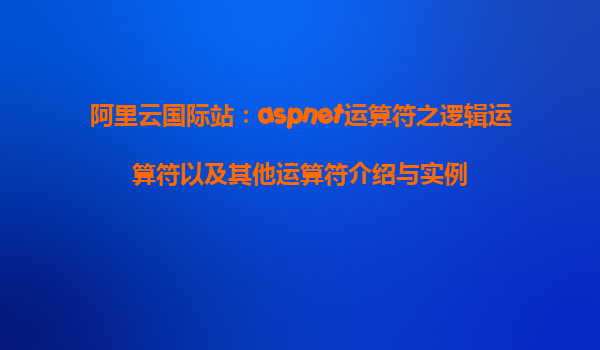阿里云国际站:ASP.NET 运算符之逻辑运算符及其他运算符介绍与实例