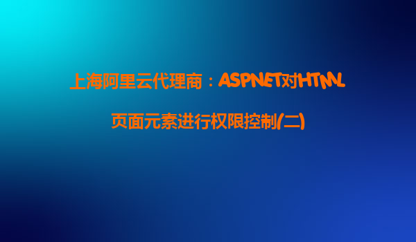 上海阿里云代理商:ASP.NET对HTML页面元素进行权限控制(二)