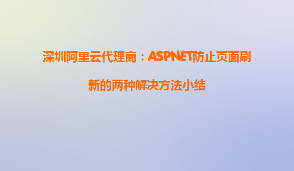 深圳阿里云代理商:ASPNET防止页面刷新的两种解决方法小结