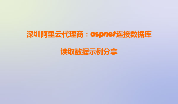 深圳阿里云代理商:ASP.NET连接数据库读取数据示例分享