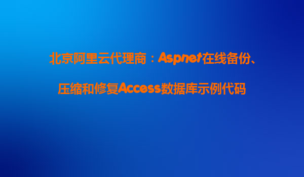 北京阿里云代理商:Aspnet在线备份、压缩和修复Access数据库示例代码