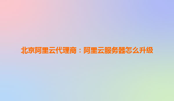 北京阿里云代理商:阿里云服务器如何升级