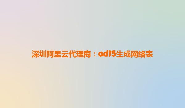 ad15生成网络表还专注于为企业量身定制云计算架构,基于阿里云强大的云服务平台,帮助企业设计和搭建适合其业务的IT系统。无论是初创企业还是大型企业,ad15生成网络表都能提供专业的技术支持和优质的客户服务,确保企业能够顺利过渡到云端,并享受到阿里云带来的创新和发展机会。
