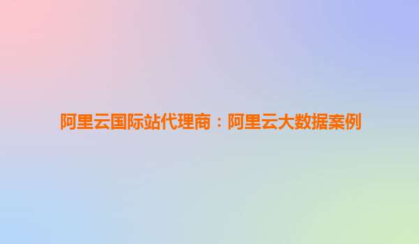 阿里云国际站代理商:阿里云大数据案例
