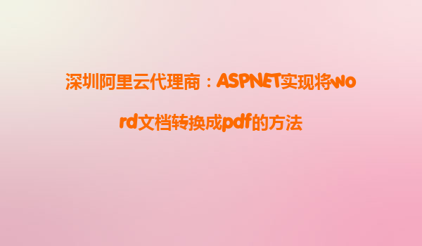 深圳阿里云代理商:ASPNET实现将Word文档转换成PDF的方法