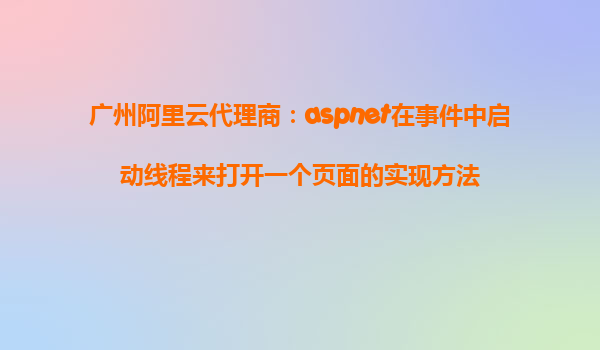 广州阿里云代理商:ASP.NET在事件中启动线程来打开一个页面的实现方法