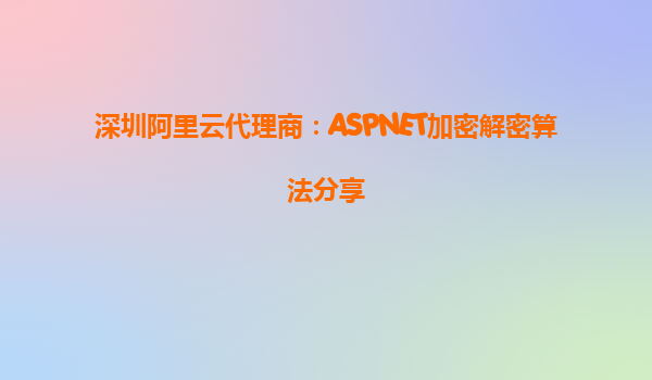 深圳阿里云代理商:ASP.NET加密解密算法分享