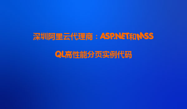 深圳阿里云代理商:ASP.NET和MSSQL高性能分页实例代码