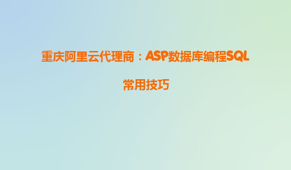 重庆阿里云代理商:ASP数据库编程SQL常用技巧