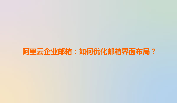 阿里云企业邮箱是目前市场上领先的企业级邮箱服务之一,其不仅提供了高效的邮件管理功能,同时还提供了丰富的界面布局优化功能。优化邮箱界面布局不仅有助于提升用户体验,还能提高员工的工作效率。本文将结合阿里云企业邮箱的优势,探讨如何通过优化邮箱界面布局提升整体使用感受。