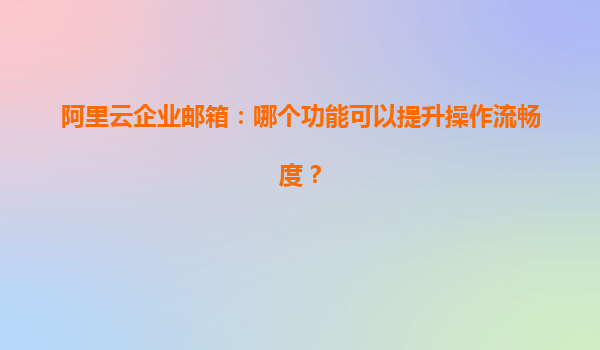 阿里云企业邮箱:哪个功能可以提升操作流畅度?