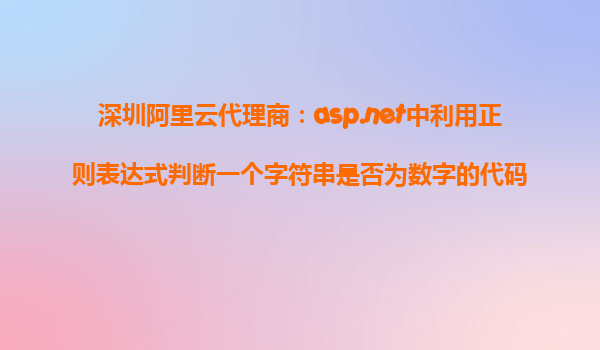 在现代软件开发中,数据验证是一个非常重要的环节。在ASP.NET中,利用正则表达式来判断一个字符串是否为数字是一个常见的需求。本文将详细介绍如何在ASP.NET中使用正则表达式进行数字验证,并结合深圳阿里云代理商的优势,帮助开发者更好地理解和应用这一技术。