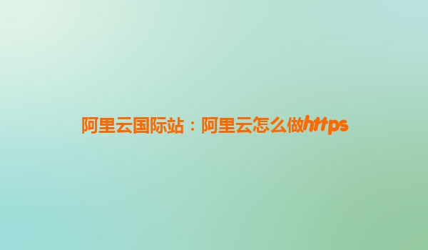 阿里云国际站:阿里云怎么做HTTPS