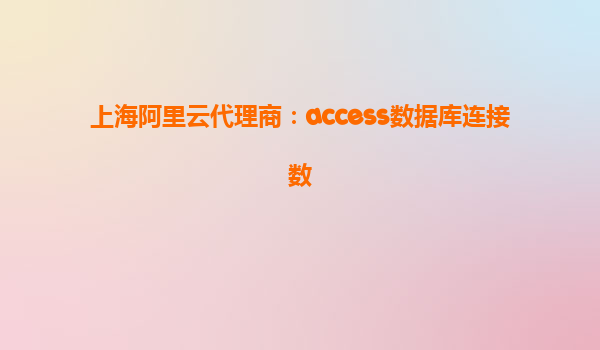 上海阿里云代理商:Access数据库连接数分析及阿里云优势