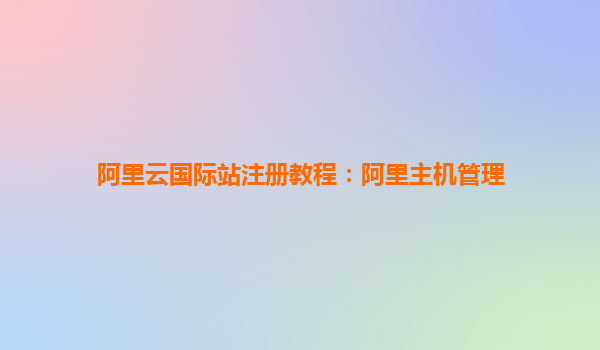 阿里云国际站注册教程:阿里主机管理的优势与便捷性