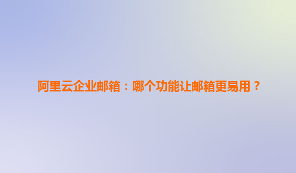 阿里云企业邮箱:哪个功能让邮箱更易用?
