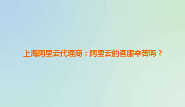 上海阿里云代理商:阿里云的客服辛苦吗?