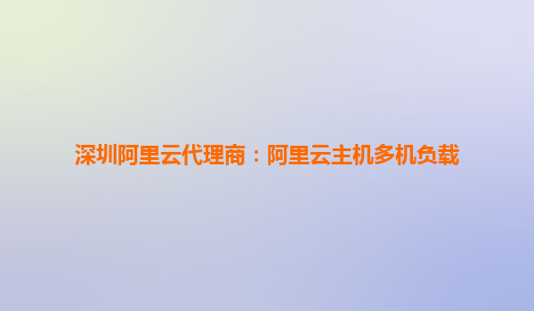 深圳阿里云代理商:阿里云主机多机负载的优势与应用