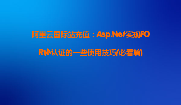 阿里云国际站充值:Asp.Net实现FORM认证的一些使用技巧(必看篇)