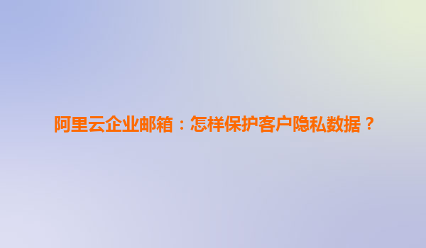 如何保护客户隐私数据:阿里云企业邮箱的优势与好用之处