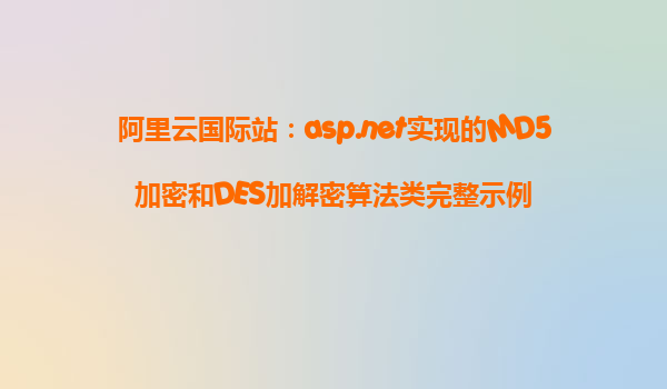 基于阿里云国际站的ASP.NET实现MD5加密和DES加解密算法示例