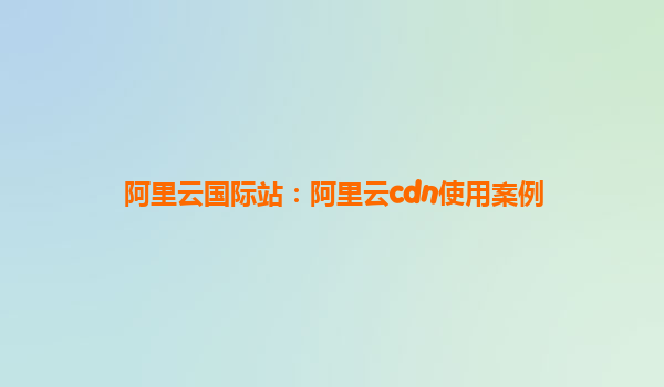阿里云国际站:阿里云CDN使用案例