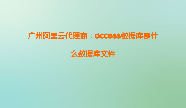 广州阿里云代理商:Access数据库是什么数据库文件