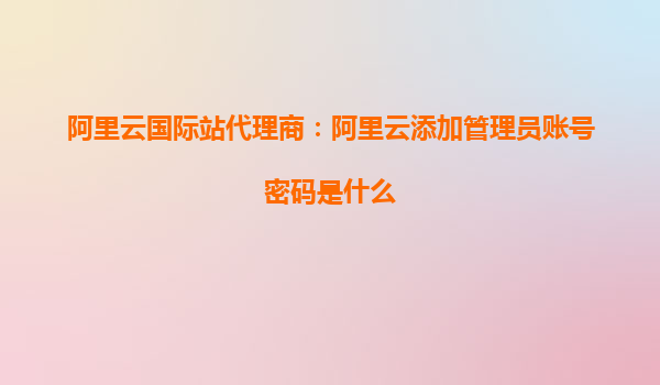 阿里云国际站代理商:阿里云添加管理员账号密码是什么