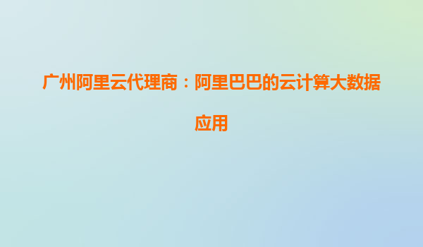 广州阿里云代理商:阿里巴巴的云计算大数据应用