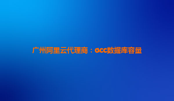 广州阿里云代理商:ACC数据库容量的优势与应用