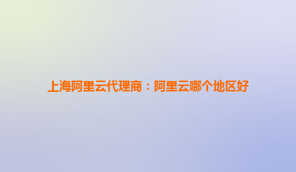 上海阿里云代理商:阿里云哪个地区好