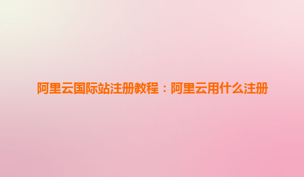 阿里云国际站注册教程:选择阿里云,享受领先的云计算服务