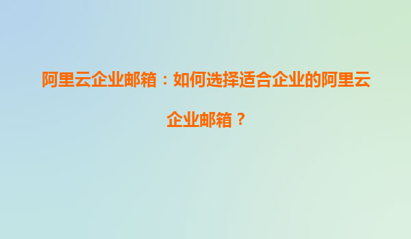 在当今的商业环境中,电子邮件已成为企业沟通不可或缺的工具。选择一个可靠、功能全面的企业邮箱服务对于提高工作效率、保障信息安全至关重要。阿里云企业邮箱以其强大的功能和优质的服务,成为众多企业的首选。本文将从阿里云企业邮箱的优势和使用后的感受两个方面,探讨如何选择适合企业的阿里云企业邮箱。